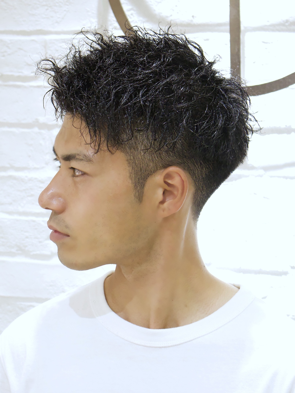 王道×ツイストパーマメンズの王道のアップバングショートにツイストパーマを掛け合わせたハイクオリティスタイルです!