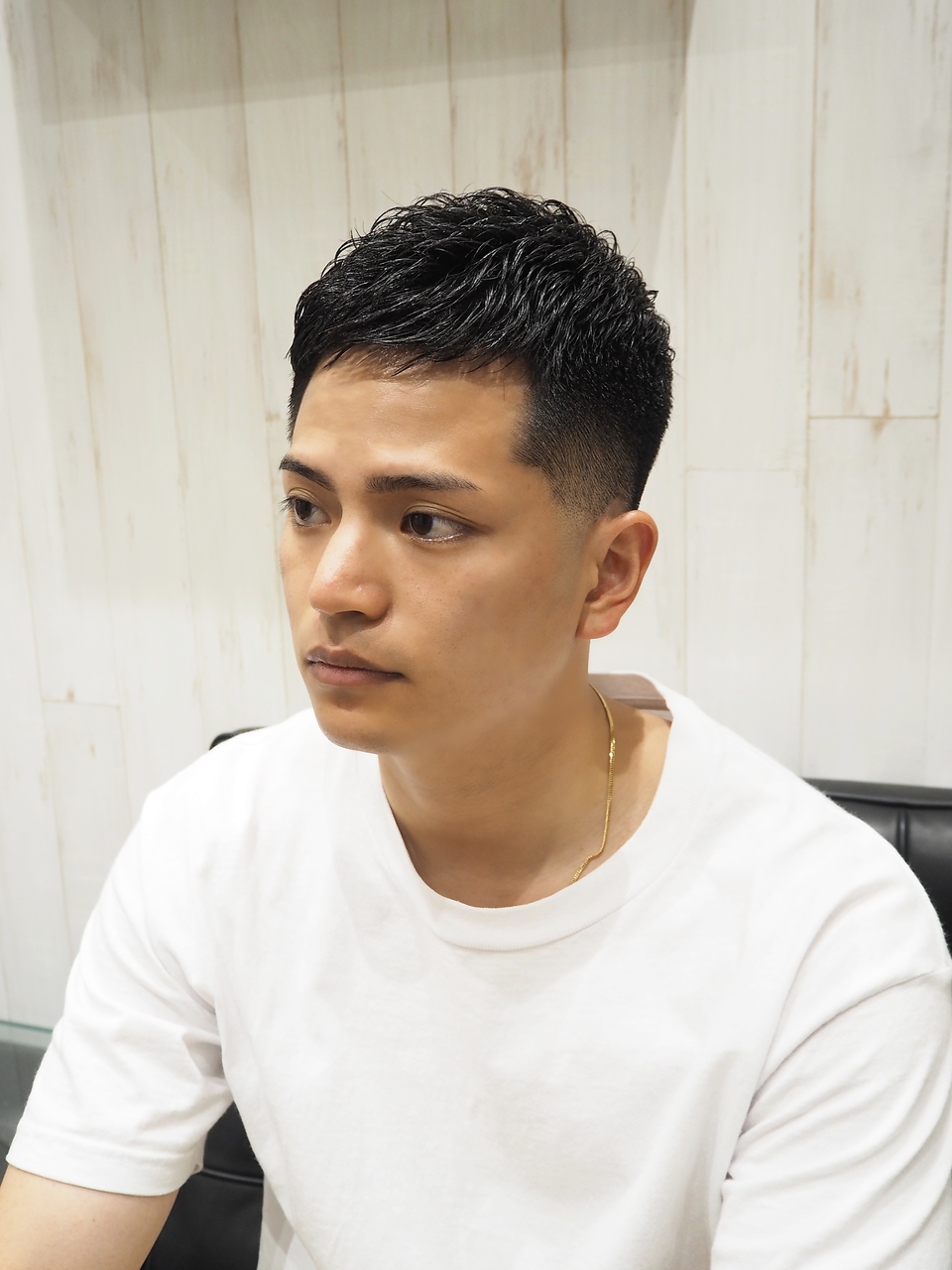 周りをスッキリするだけで印象がグッと変わります!パーマで形ができているのでグリースをつけて軽く整えるだけで大丈夫です!