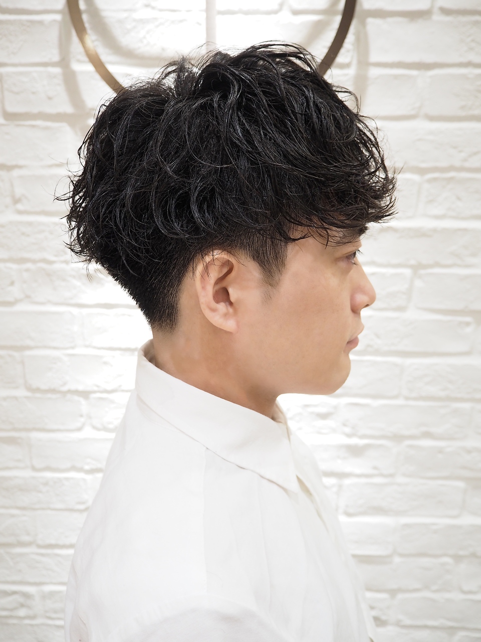 ボリューム感の出やすいパーマを活かしてグリースとマットワックスを混ぜて絶妙な質感にします!ビフォーアフターで見せるゆるふわスパイラルマッシュです!伸び切った直毛でもカットとパーマでここまで変われます!