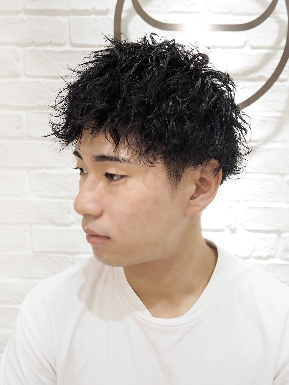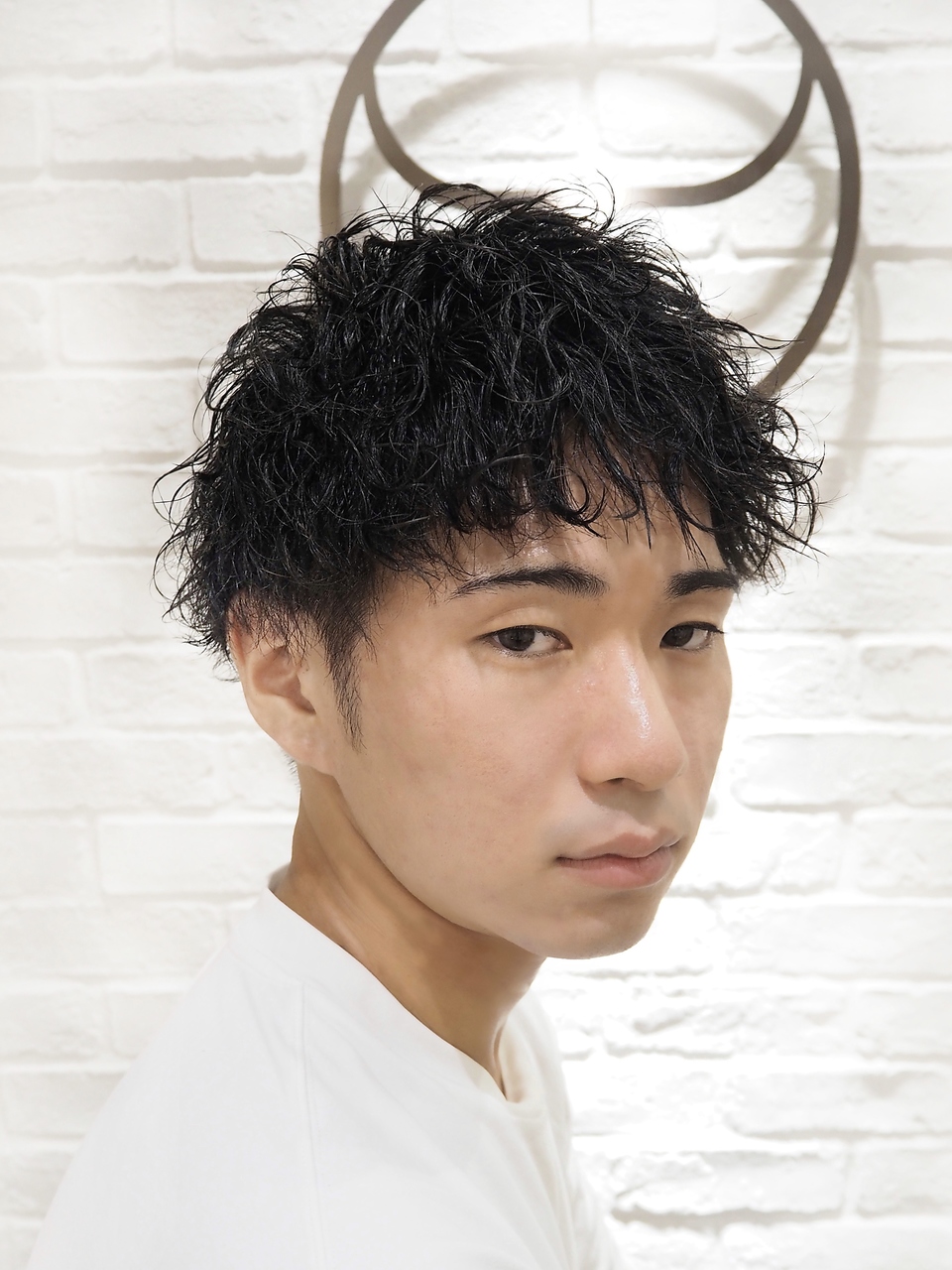 波打ちパーマでオン眉でもカッコいい無造作ショートマッシュです!!短いけど動きとオシャレ感が欲しい方にはオススメです!グリースとマットワックスで絶妙な質感が作れるのであとはパーマを活かすように揉み込んでつけてください!!
