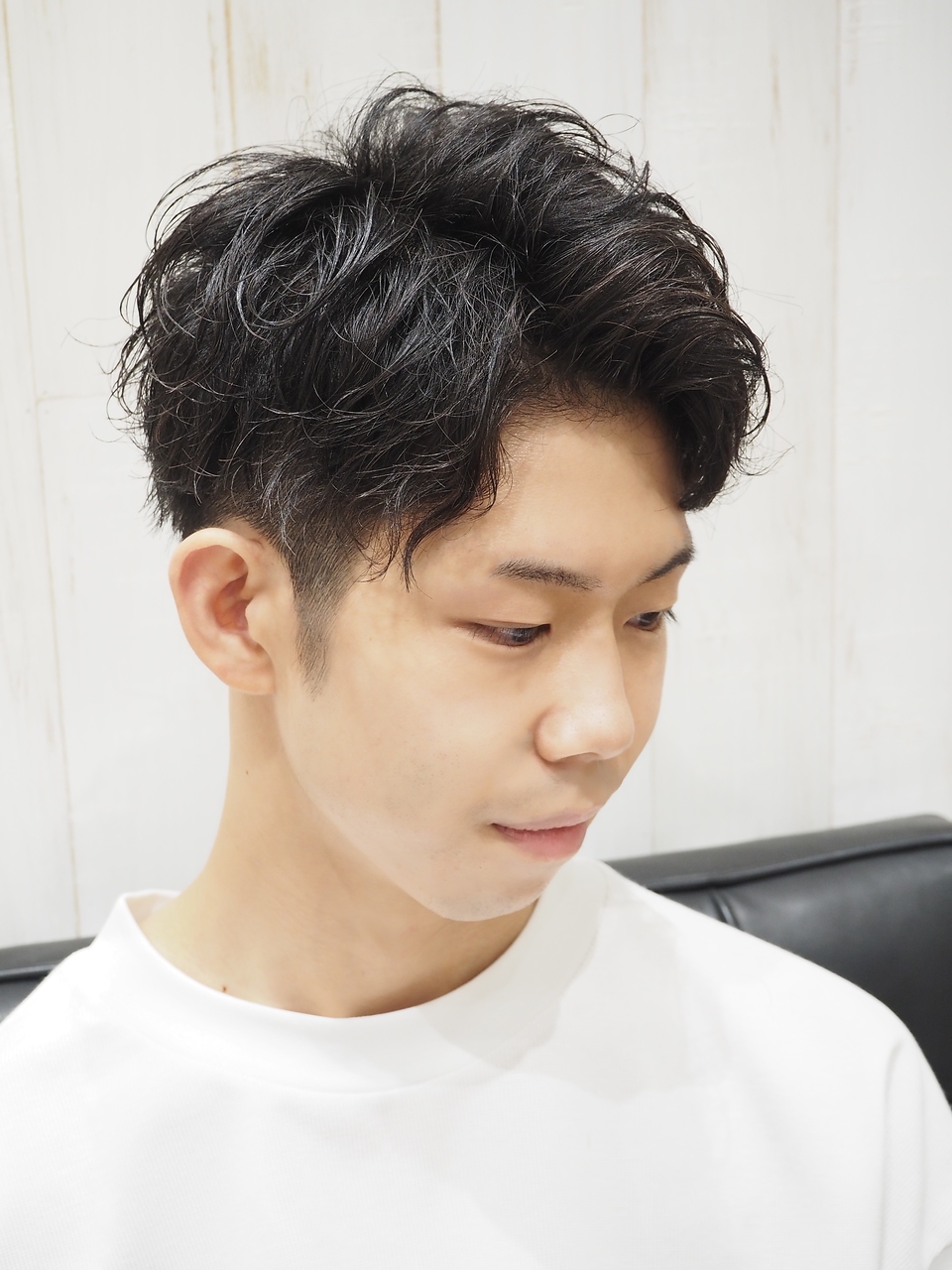 リバースパーマとスパイラルパーマのミックスで少し大人っぽく爽やかなツーブロックショートスタイルになります!