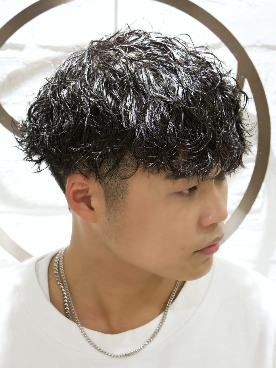 アイロンでクセをつけたようなカールがかかる波巻きスパイラルパーマです!!マッシュスタイルとの相性も良く、毛先までカールが欲しい方におすすめです!! タオルドライでグリースをつけてスタイリングしています。