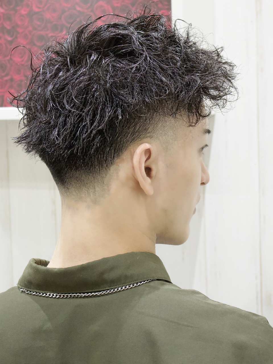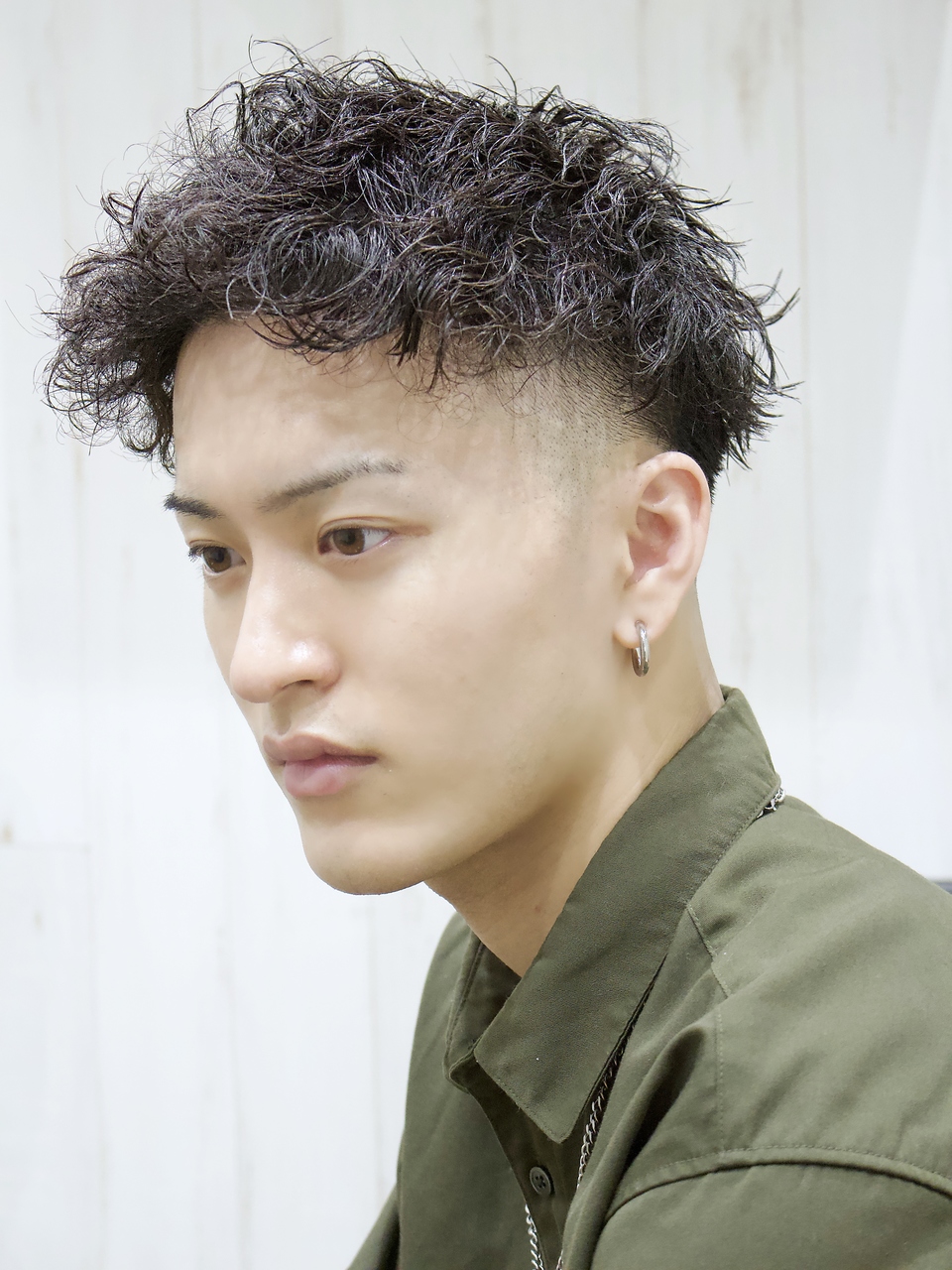 スキンフェードとツイストスパイラルパーマを融合させた爆イケスタイルです!パーマはジェットモヒカン風になるようにかかっています!