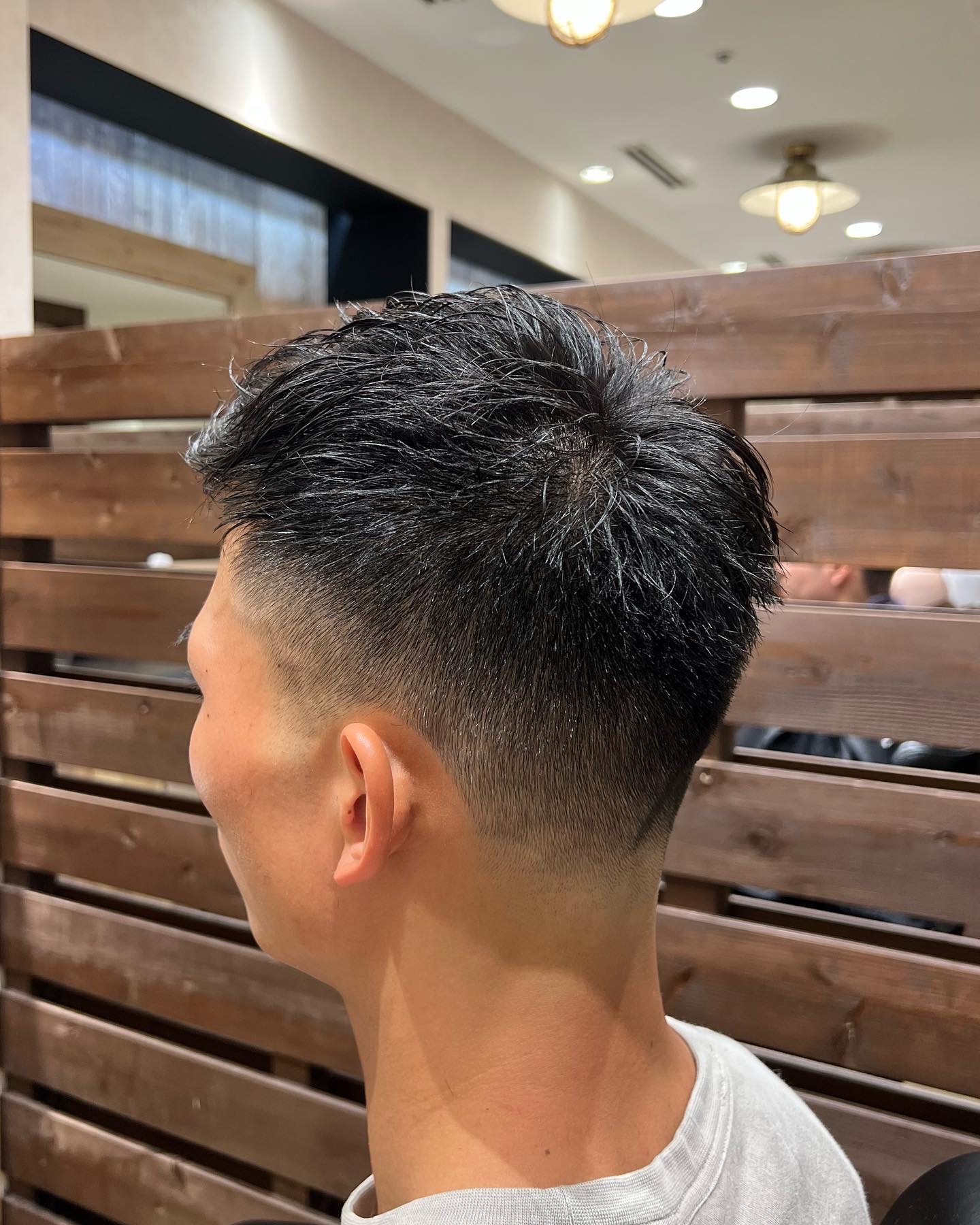 横、後ろは軽いグラデーションで刈り上げ、上は気持ち長めにし遊びを持たせ、かつスッキリ爽やかな夏らしいスタイルです。