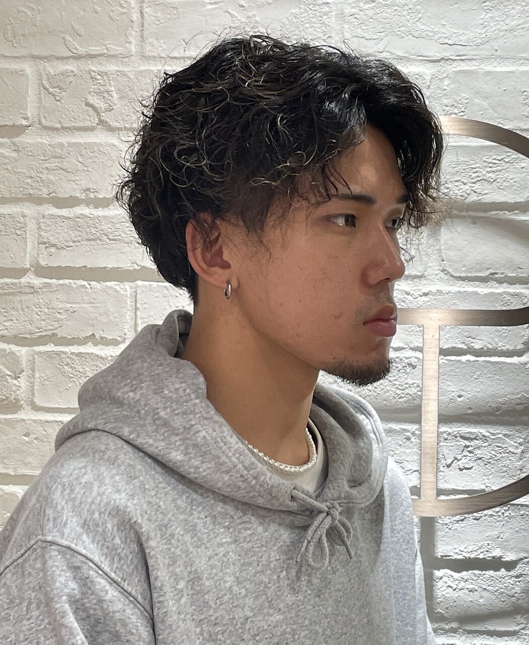 直毛でセットしずらい髪質にツイストスパイラルパーマで動きとかっこよさをプラス