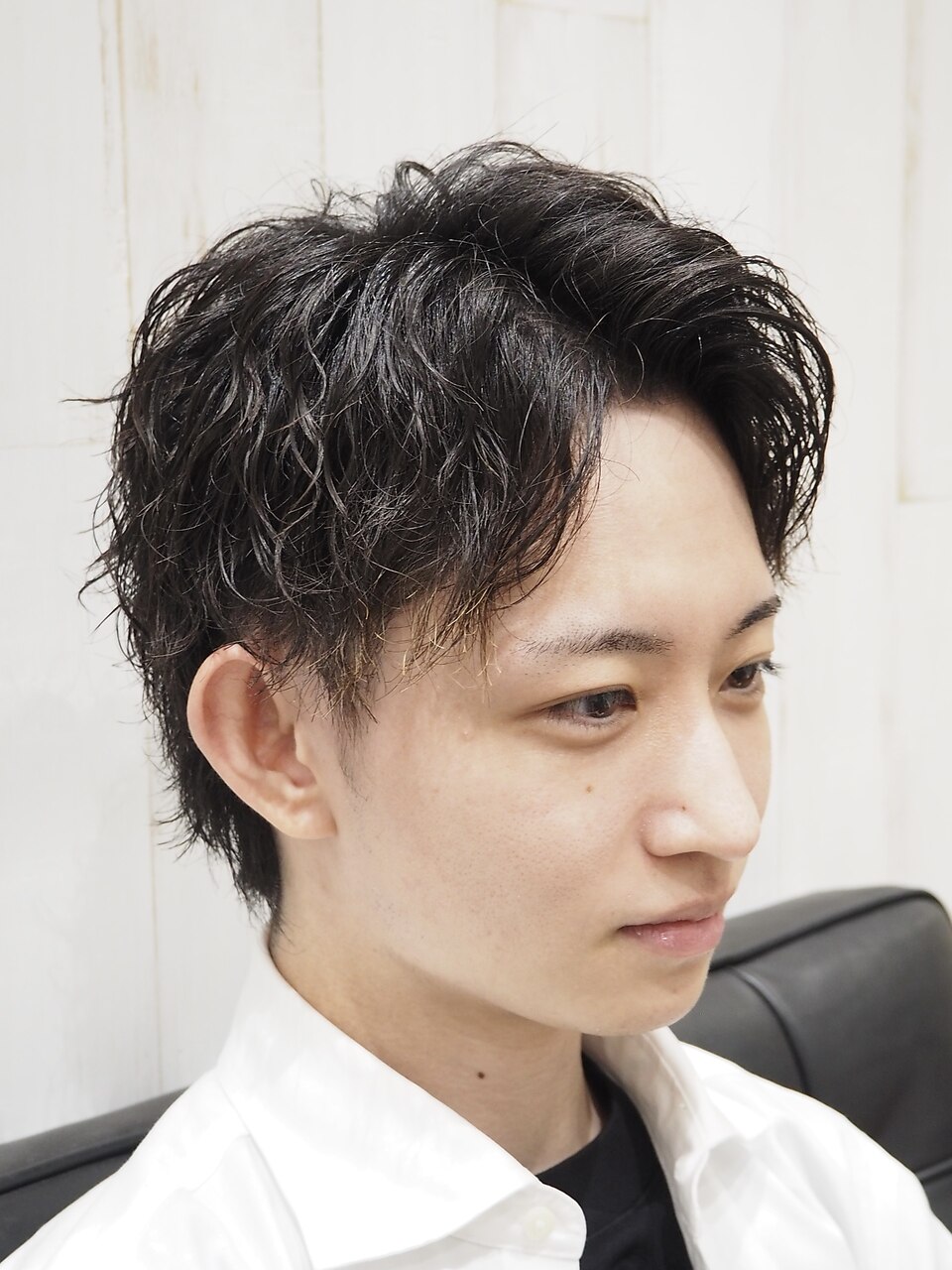 襟足は刈り上げないのに、爽やかなセンターパート風波打ちスパイラルパーマスタイル!