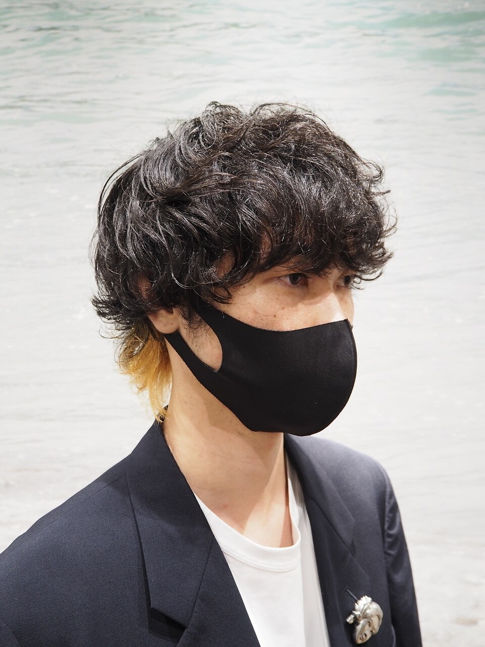 - マスクも似合うメンズビジネスマッシュウルフインナーカラー