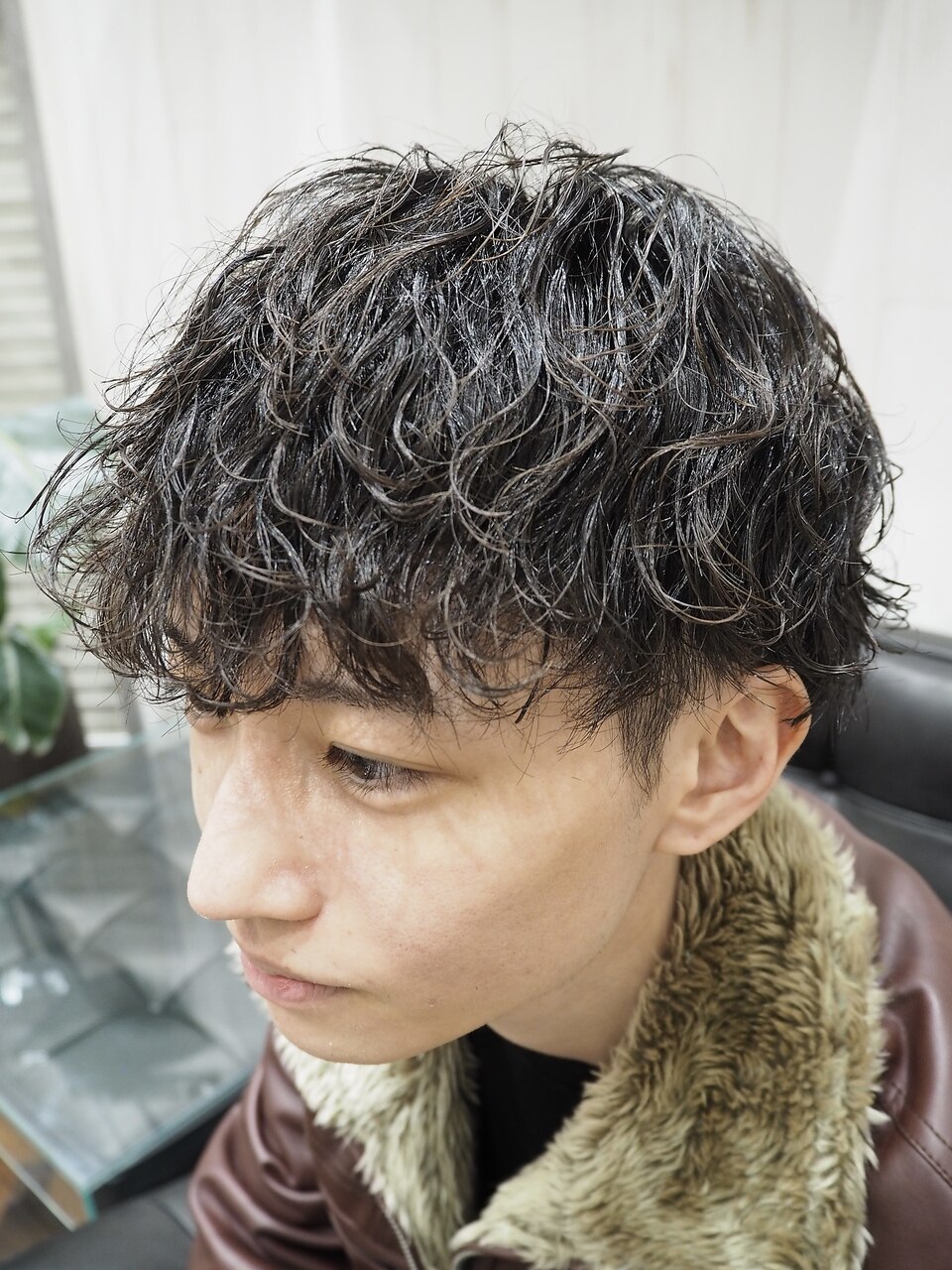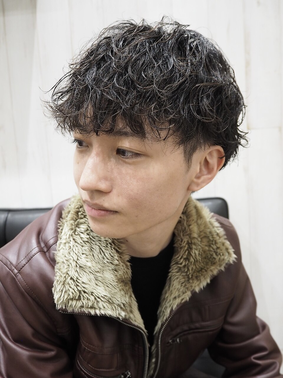 - メンズ波打ちパーマツーブロックマッシュショート