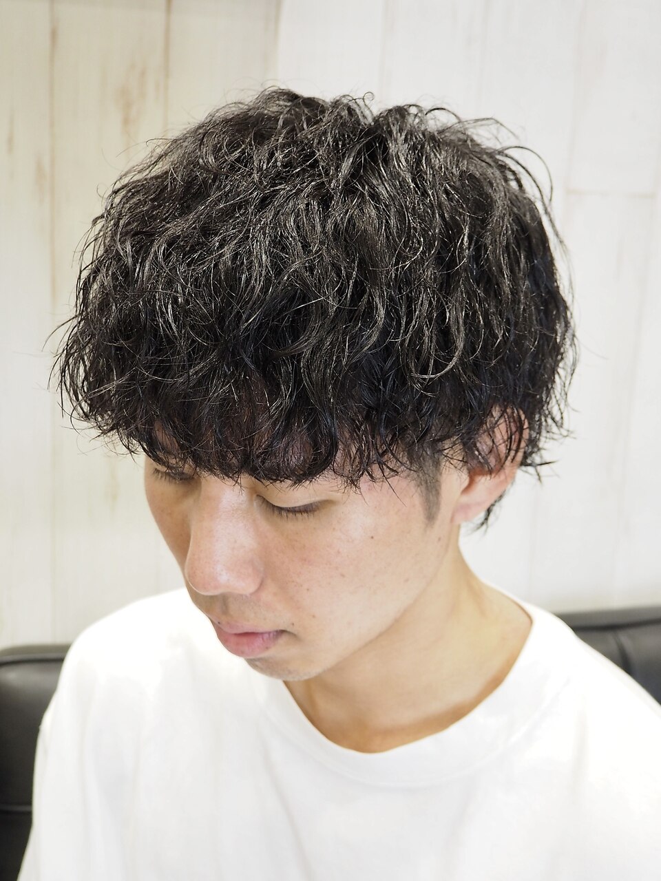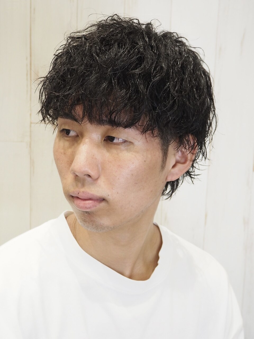 - 波打ちツイストスパイラルパーマメンズツーブロックウルフ