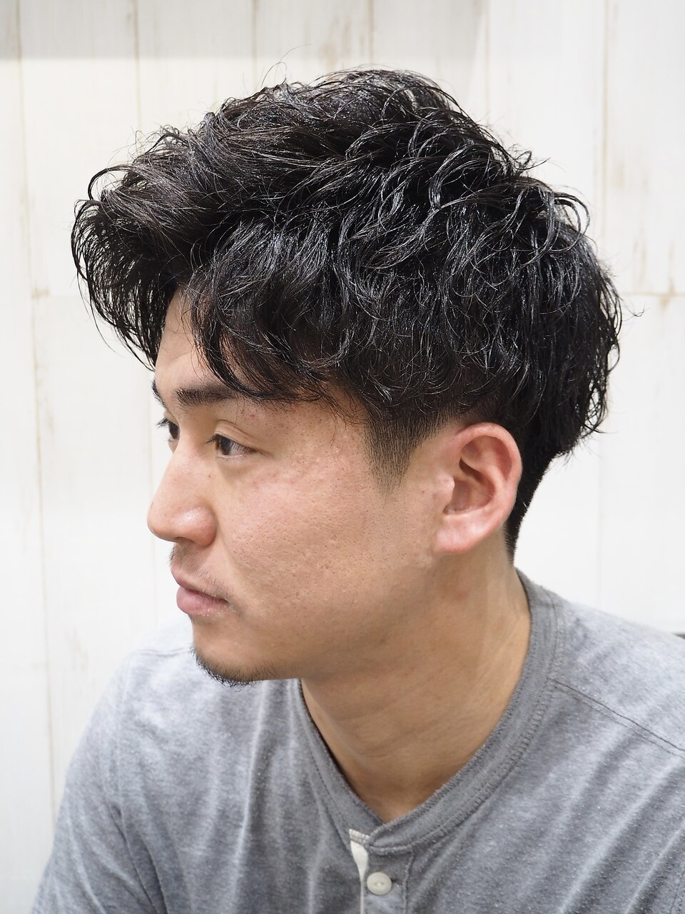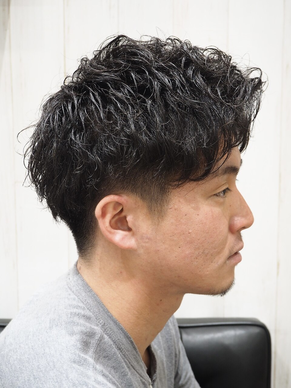 前髪を上げても下げてもカッコよくなるようにスパイラルパーマを掛けています!!